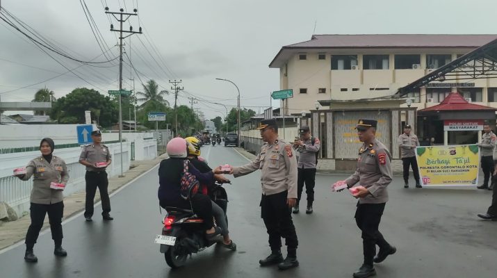 Polrestagorontalokota.com – Dalam rangka menyemarakkan bulan suci Ramadan dan wujud nyata kepedulian terhadap sesama, jajaran Polresta Gorontalo Kota menggelar kegiatan Berbagi Takjil yang ditujukan