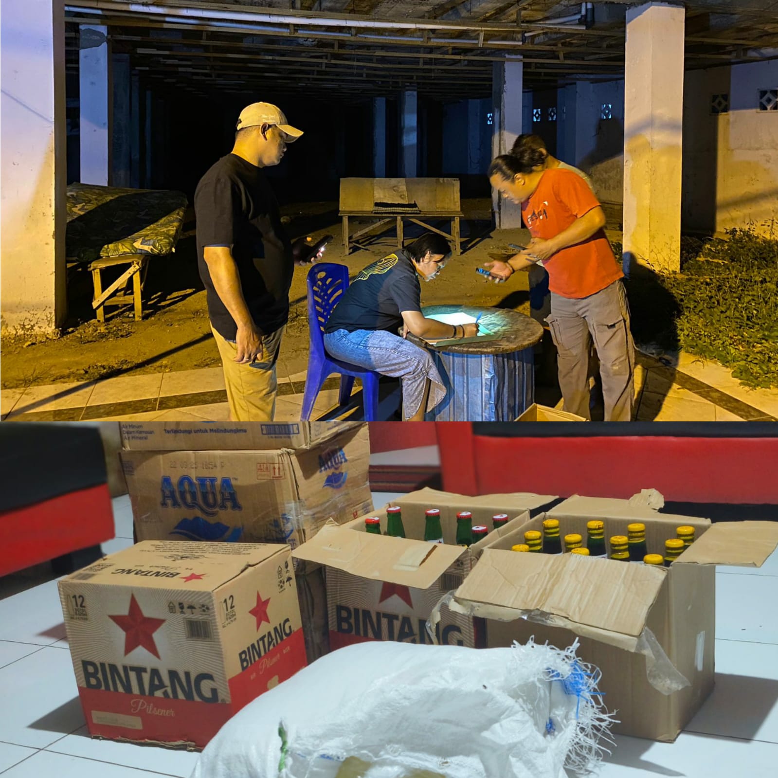 Dijelaskan Kompol Leonardo,dalam kegiatan tersebut team rajawali berhasil mengamankan 112 botol minuman keras berbagai jenis yakni 78 botol cap tikus,11 botol kasegaran,19 botol bir bintang,4 botol guinnes jumbo serta dua sak plastik (20 liter) yang masing masing plastik berisi 10 liter cairan yang diduga beralkohol (cap tikus) dari warung dan kos kosan milik EH (40).