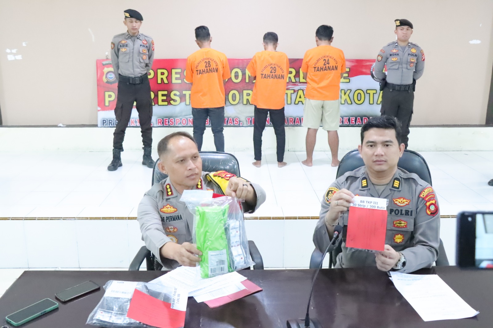 Kapolresta Gorontalo Kota Kombespol Dr.Ade Permana,S.I.K.,M.H yang didampingi Kast Narkoba Akp Cecep Ibnu Ahmadi,SH,SIK pada press confrence menjelaskan bahwa selama bulan April ini ada tiga kasus peredaran obat tanpa ijin edar yang di ungkap oleh satuan narkoba