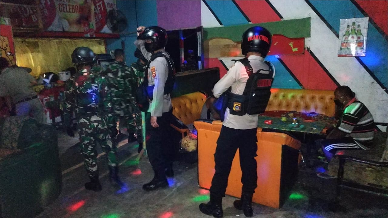 Polres Gorontalo Kota – Sebagai upaya mengantisipasi adanya tempat kerumunan massa di tengah pandemi virus Corona (Covid-19), Polres Gorontalo Kota bersama TNI dan satpol PP, terus menyisir jalan jalan di wilayah kota Gorontalo, termasuk kafe. Hasilnya, patroli gabungan yang dipimpin oleh Kbo satuan Sabhara Ipda Gendut Hartono ini masih menemukan satu cafe yang buka di kel.leato tepatnya di dekat terminal, Karenanya personel gabungan itu langsung membubarkan dan menutup cafe “putra” tersebut.