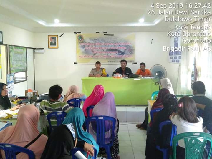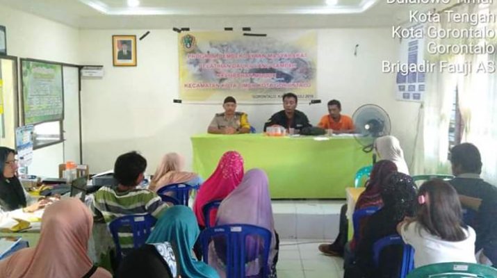 Polres Gorontalo Kota – Bhabinkamtibmas Kel.Moodu Polsek Kota Timur Polres Gorontalo Kota Brigadir Fauji Sangkala bertempat di aula kantor lurah Moodu menghadiri giat penandatanganan kontrak penerima bantuan Stimulan Perumahan Swadaya (BSPS).Kamis (05/09/19 ).