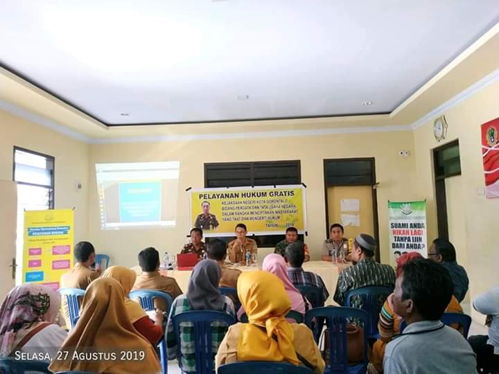 Polres Gorontalo Kota – Bhabinkamtibmas Kel. IPILO, polsek Kota Timur BRIPKA ROMMY PAERA Menghadiri kegiatan sosialisasi pelayanan hukum gratis dari kejaksaan negri Gorontalo, yang mana dalam kegiatan tersebut dilaksanakan di aula Kel.Ipilo, Selasa (27/08/2019).