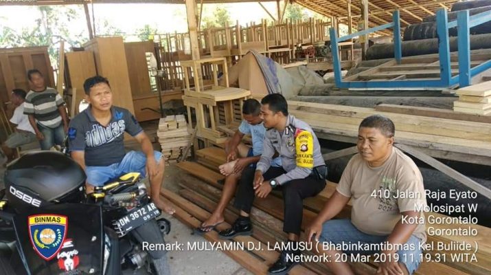 Polres Gorontalo Kota – Tiada hari tanpa kegiatan sambang kunjung oleh bhabinkamtibmas di jajaran Polres Gorontalo Kota (20/03/19). Seperti yang dilakukan oleh Brigadir Mulyamin Lamusu selaku Bhabinkamtibmas Kelurahan Buliide polsek kota Barat polres Gorontalo kota yang melaksanakan sambang pada masyarakat binaannya.