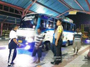 Polres Gorontalo Kota – Bhabinkamtibmas Kel Libuo Kec Dungingi Polsek Dungingi Bripka Rahmat Bowta melaksanakan piket di Mako Polsek Dungingi menyempatkan diri melaksanakan patroli di Terminal Dungingi. Jumat (13/9)