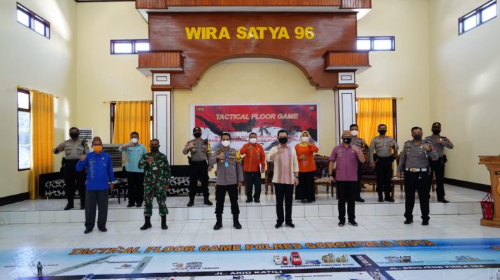 Polres Gorontalo Kota – Tactical Floor Game (TFG) merupakan bagian dari skenario latihan untuk mematangkan rencana operasi yang telah disusun bersama staf dan pelaku