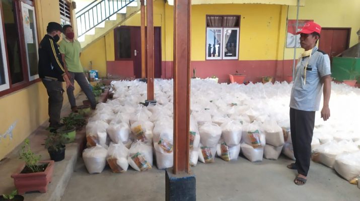 BHABINKAMTIBMAS KAWAL 660 PAKET SEMBAKO YANG AKAN DI DISTRIBUSIKAN PADA MASYARAKAT TERDAMPAK COVID 19