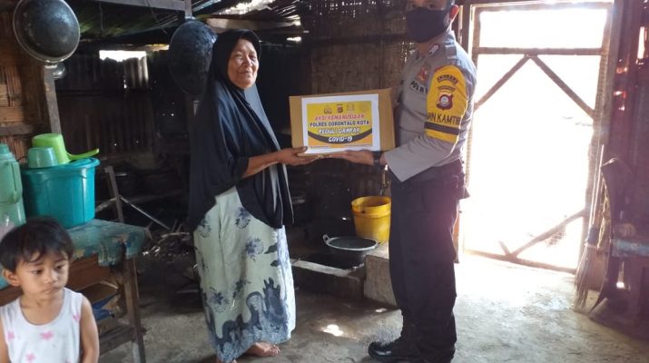 Polres Gorontalo Kota – Sebagai wujud kepedulian dan pengabdian terhadap masyarakat yang membutuhkan ditengah mewabahnya pandemi Corona Virus Disease (Covid-19). Hari ini bripka Faisal