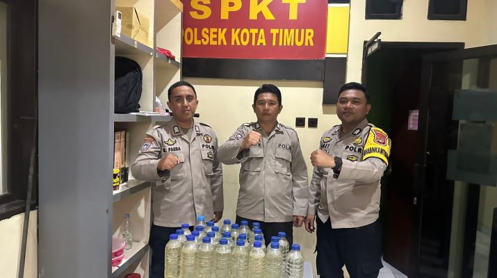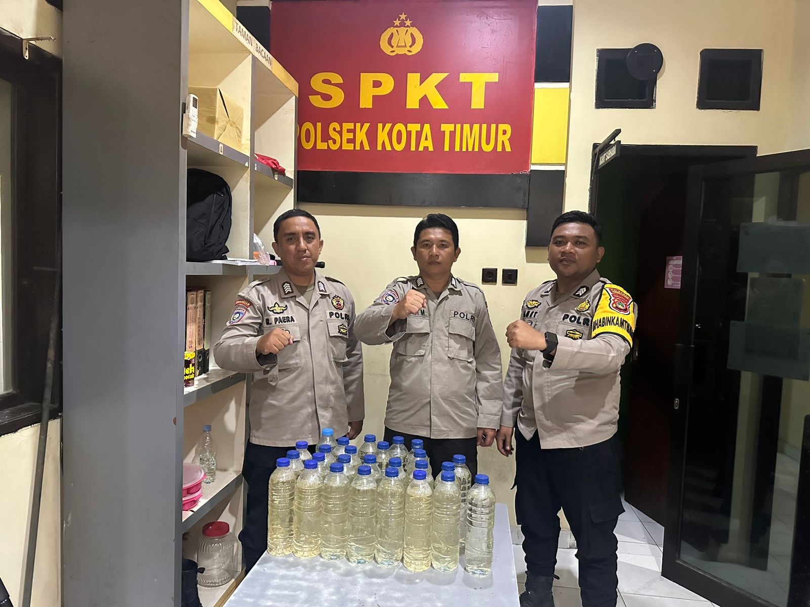 PolrestaGorontaloKota,Polsek Kota Timur Polresta Gorontalo Kota berhasil menyita dan mengamankan minuman keras (miras) jenis cap tikus melalui patroli kegiatan rutin yang ditingkatkan (KRYD) yang di laksanakan pada Jumat (24/11/23) malam.