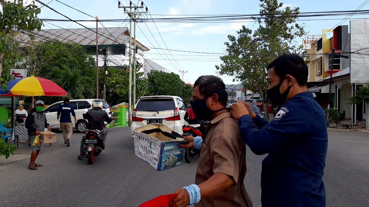 Kami memberikan masker bersama paket makanan bergizi pada masyarakat yang kami temui di jalanan sedang beraktifitas namun tidak menggunakan masker ucap Aipda Fajar