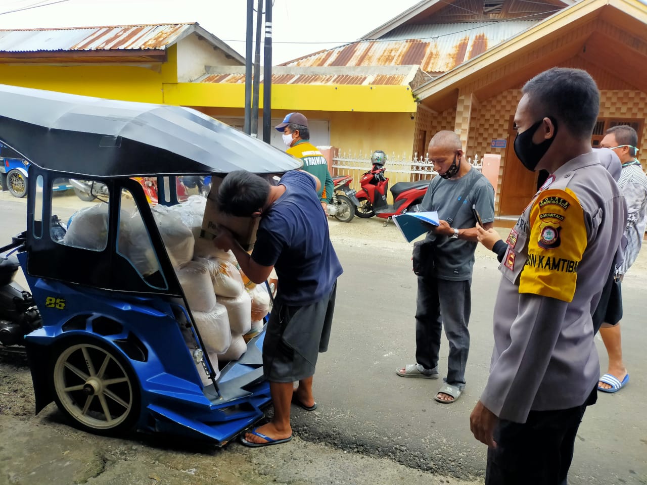 Sebanyak 383 paket sembako disalurkan kepada masyarakat yang sudah di data oleh aparat kelurahan,dan paket sembako tersebut masing masing berisi Gula 1kg,Minyak kelapa 1 kg,beras 10kg dan telur 15 butir ujar Brigadir Agus