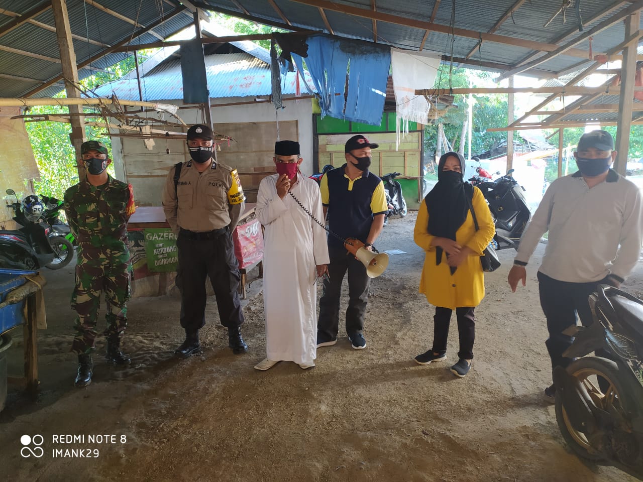 Polres Gorontalo Kota – Unsur Tiga Pilar Kel.Huangobotu mengadakan sosialisasi kepada masyarakat tentang penerapan Pembatasan Sosial Berskala Besar (PSBB), untuk mencegah penyebaran virus Corona, Kamis (07/05/20).