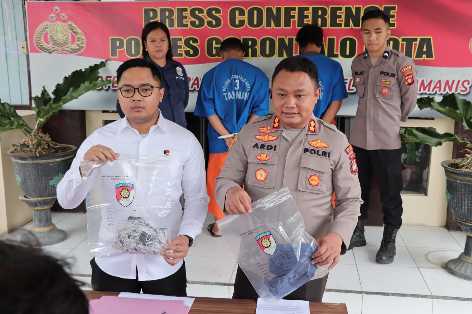 Dalam press reales,senin (22/08) Kapolres Gorontalo Kota Akbp Ardi Rahananto,SE,SIK,M.Si yang di dampingi Kasat Reskrim Iptu Mohammad Nauval Seno,STK,SIK menjelaskan bahwa sebelumnya diamankan tiga pria yang berada dalam vidio tersebut,namun setelah dilakukan penyelidikan dengan melakukan pemeriksaan terhadap saksi saksi,dua diantaranya terbukti melalukan penganiayaan terhadap driver ojek online (ojol) FK alias Boga