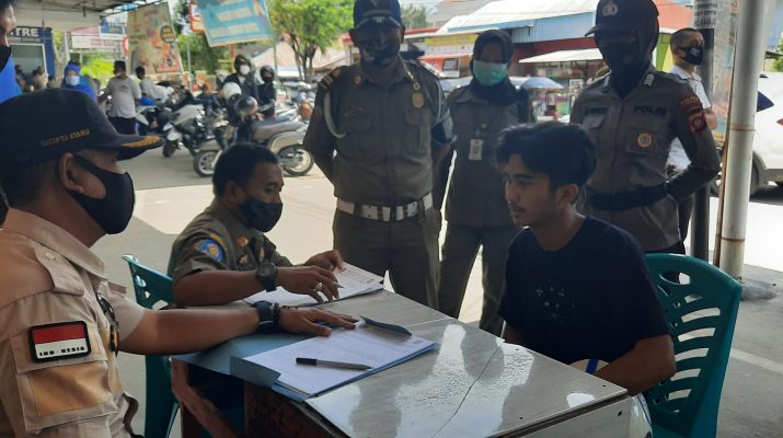 Kepolisian Polres Gorontalo bersama TNI dan Satpol PP Selasa (15/9/2020) pagi, menggelar Operasi Yustisi kepada masyarakat yang tidak menggunakan masker guna mencegah penyeberan mata rantai covid 19 di Kota Gorontalo,.