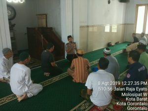 Di kesempatan Kamis 08 Agustus 2019 menghimbau terhadap para jamaah Masjid At Taqwa di Kelurahan Molosipat W Kecamatan Kota Barat  Kota Gorontalo, sekiranya bisa mengajak warga yang lain untuk bisa juga melaksanakan sholat di masjid tersebut.