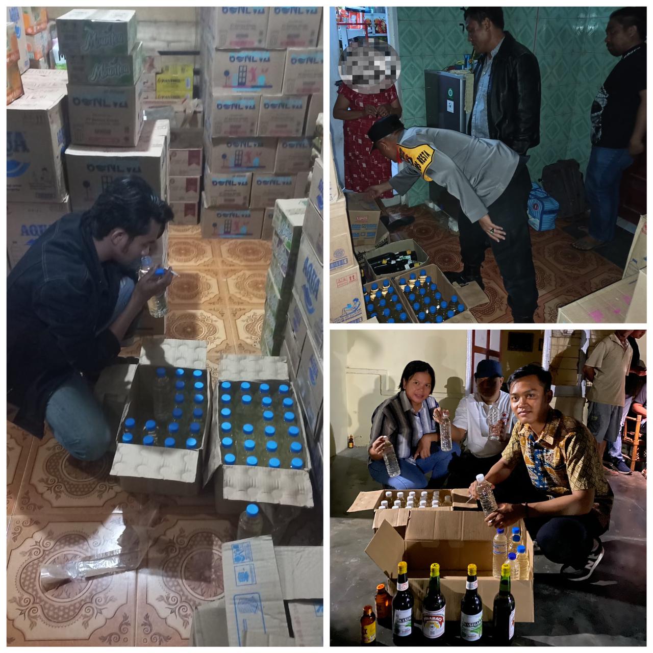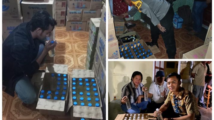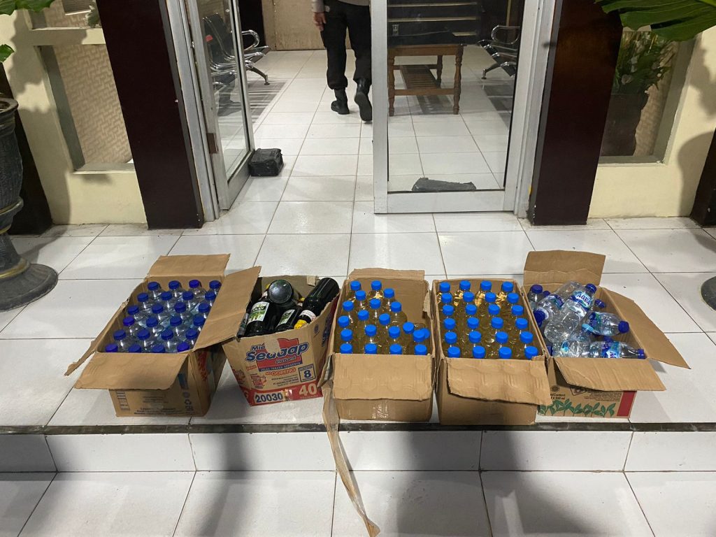 “Malam ini total barang bukti minuman keras yang berhasil diamankan adalah 121 botol dengan rincian 103 botol cap tikus ukuran 600ml,16 botol kasegaran dan 2 botol pinaraci”,Ujar KBP Ade