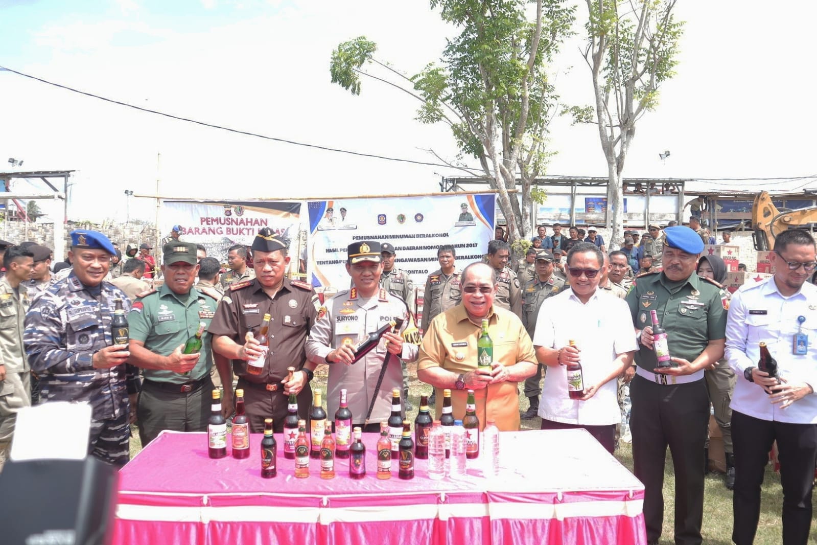 Dalam kegiatan tersebut, sebanyak 19.789 botol minuman beralkohol berbagai jenis dimusnahkan. Barang bukti ini merupakan akumulasi hasil operasi Satpol PP sebanyak 12.577 botol dan penyitaan Polresta Gorontalo Kota sebanyak 7.177 botol. Jenis miras lokal “Cap Tikus” menjadi salah satu yang terbanyak disita oleh kepolisian, mencapai lebih dari 5.000 liter.