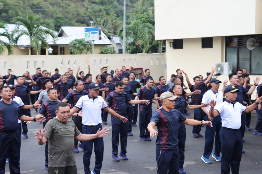 PolresGorontaloKota,Kepolisian Resor Kota Gorontalo Kota yang dipimpin langsung oleh Kapolresta Kombes Pol. Dr. Ade Permana, S.I.K.,M.H melaksanakan Olahraga Bersama dengan Personil Kodim 1304 Gorontalo dan Lanal Gorontalo yang bertempat di Lapangan Apel Mapolresta Gorontalo Kota, pada Jumat (16/6/23).