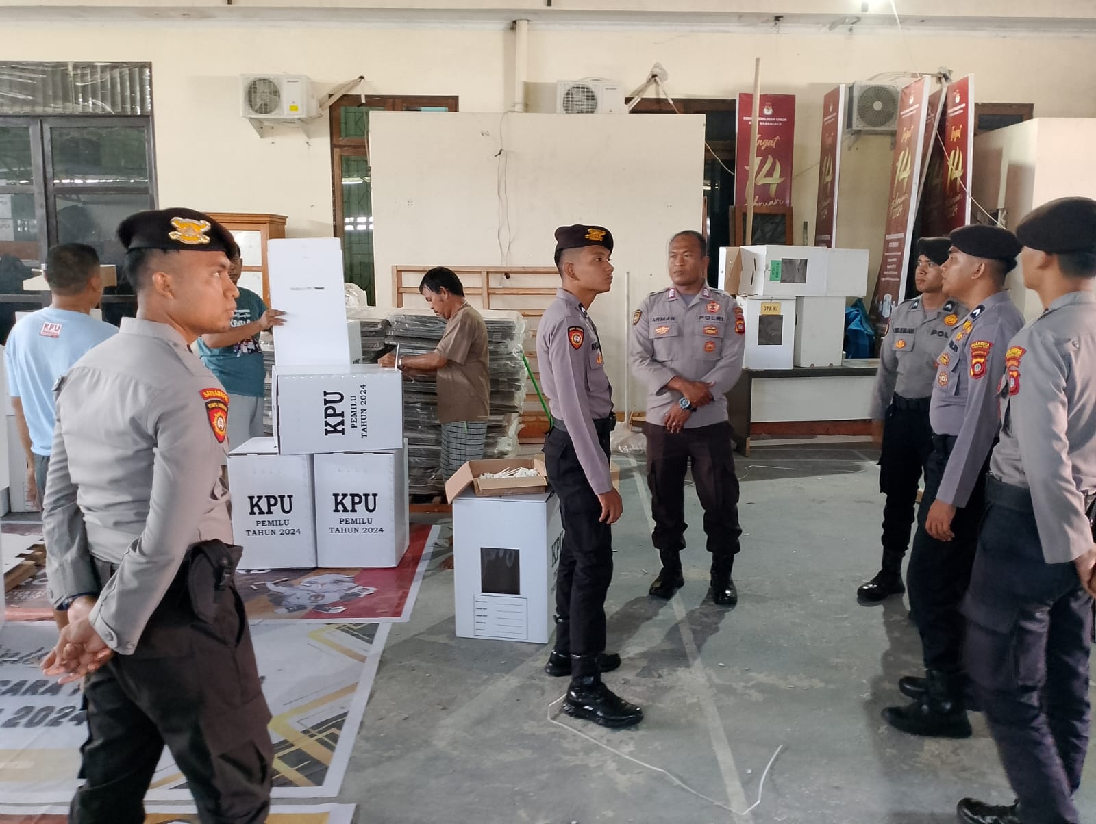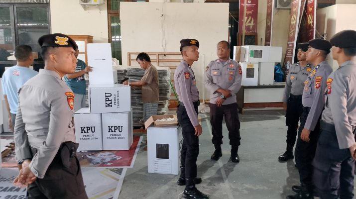 PolrestaGorontaloKota,Kepolisian Resor Kota Gorontalo Kota turut mengamankan dan mengawasi proses sortir dan pelipatan Kotak suara dalam rangka pemilihan Umum 2024 serentak, Kamis (23/11)