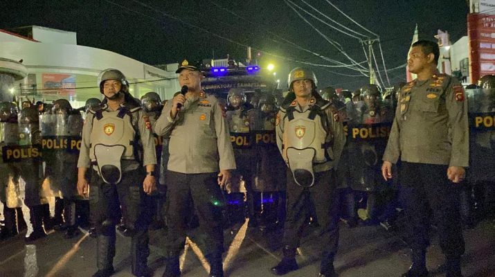 Polres Gorontalo Kota,Kapolres Gorontalo Kota menghimbau dan memberikan peringatan kepada masa aksi aliansi merah putih yang melakukan unjuk rasa di depan SPBU bundaran Saronde pada Jumat (09/09) sekitar pukul 18.30 Wita.