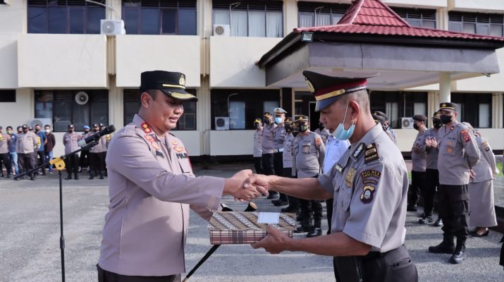 Dalam arahannya Akbp Ardi mengucapkan terima kasih kepada Iptu Hasan Mustapa yang purna atas pengabdian dan dedikasi yang sudah dipersembahkan untuk Polri selama ini.