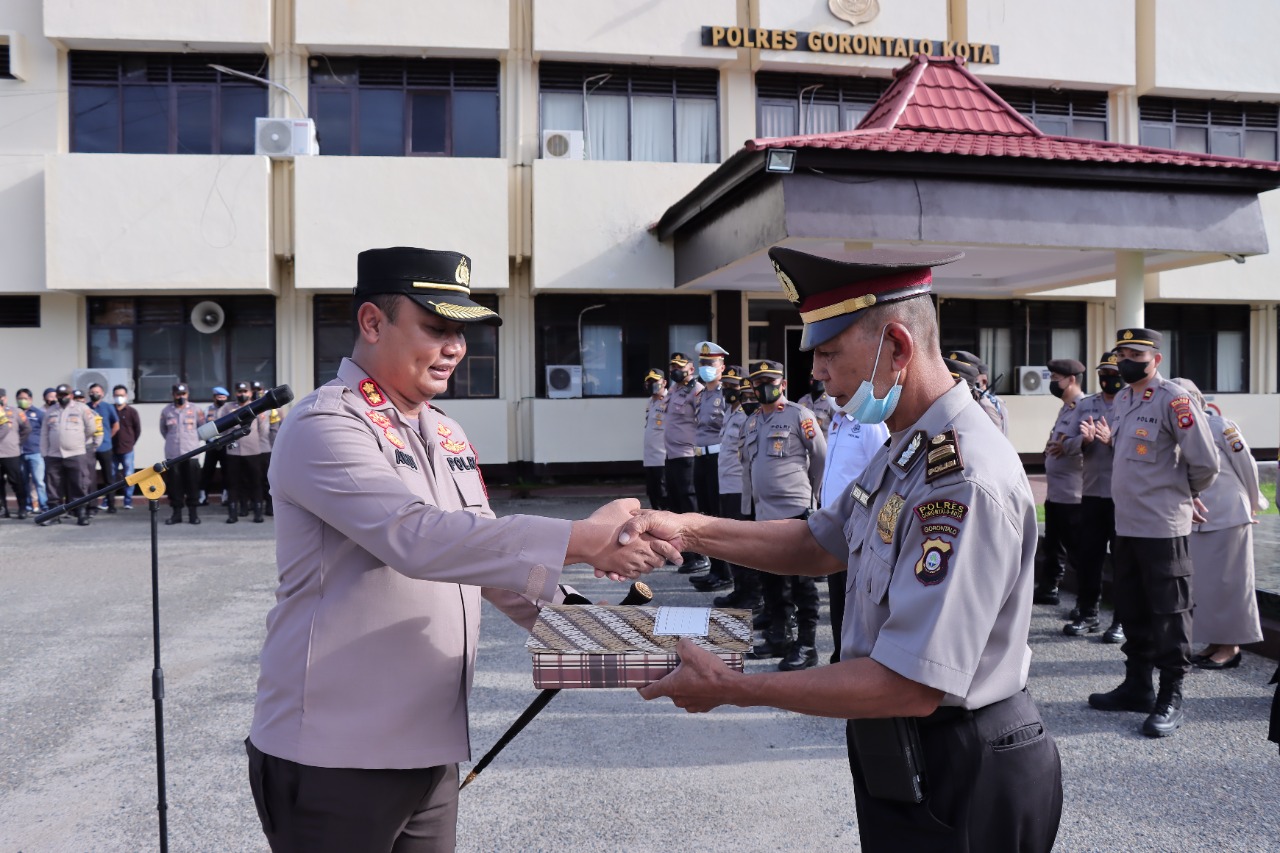 Upacara pelepasan anggota dihadiri Pejabat Utama Polres Gorontalo Kota, Kapolsek,personil dan anggota Polres serta polsek jajaran.