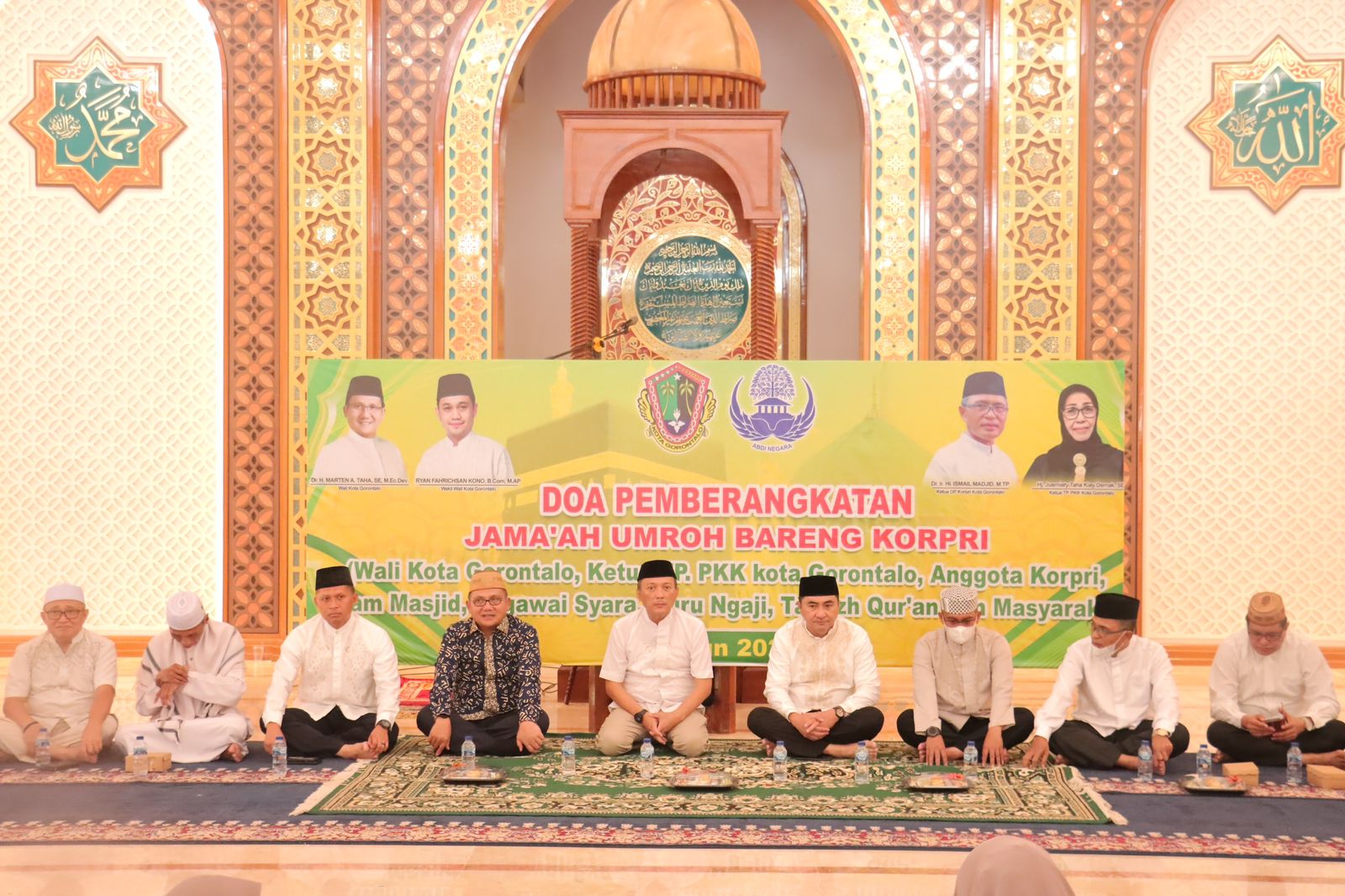 Kegiatan ini dihadiri juga oleh Walikota Gorontalo Bapak Dr. H. Marten A. Taha, S.E.,M.Ec.Dev, Dandim 1304 Gorontalo, Forkopimda Gorontalo, Tokoh Agama, Tokoh Masyarakat Kota Gorontalo serta Calon Jama’ah Umroh bersama Keluarga.