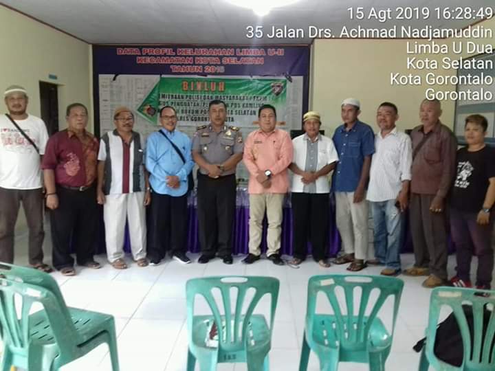 Polres Gorontalo Kota – Kasat Binmas Polres Gorontalo Kota AKP Heny M. Rahayu, SH bersama anggota melaksanakan kegiatan Binluh tentang pemberdayaan FKPM dan Penguatan Pos Kamling di kelurahan Limba U II, kecamatan Kota Selatan, kota Gorontalo,Kamis (15/08/2019).