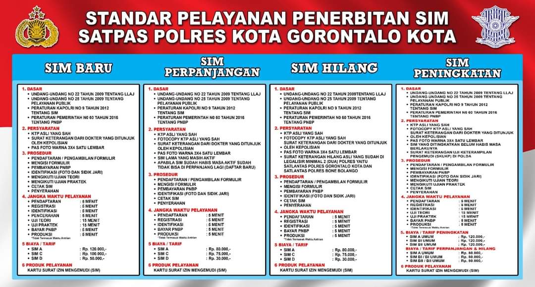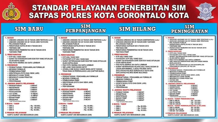 Kapolresta Gorontalo Kota Kombespol Dr.Ade Permana,S.I.K.,MH melalui Kasat lantas Akp Supomo,SH Menjelaskan Untuk pembuatan Surat Izin Mengemudi (SIM), alur prosedur yang telah ditetapkan di bawah ini: