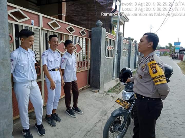 Polres Gorontalo Kota – Bhabinkamtibmas Kelurahan Huangobotu Polsek Dungingi Polres Gorontalo Kota Bripka Anwar Yasin memberikan pengarahan kepada siswa yang kedapatan bolos sekolah dan sedang asik berkumpul di jalan di Kelurahan Huangobotu Kec.Dungingi,kamis ( 08/08/2019).