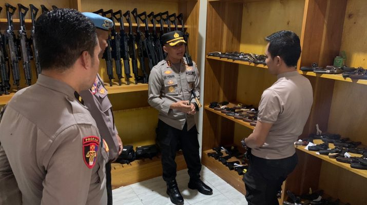 Polresta Gorontalo Kota,Kapolresta Gorontalo Kota Kombespol Dr.Ade Permana,S.I.K.,MH melakukan pengecekan di gudang senjata api, pada Kamis (12/01).