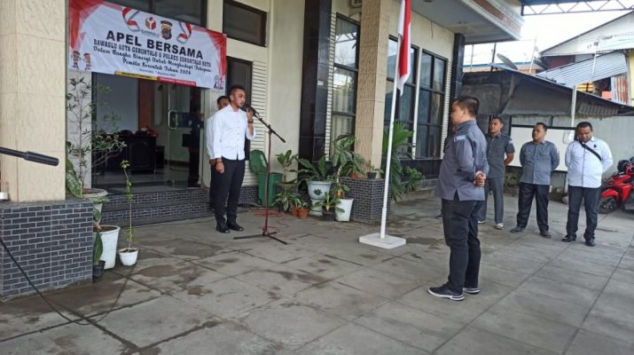 Kapolres Gorontalo Kota Akbp Ardi Rahananto,SE,SIK,M.Si melalui Kasat Intelkam Iptu Lufti Oktriyanda,STK,SIK pada apel bersama bawaslu Kota Gorontalo mengatakan bahwa Polres Gorontalo Kota siap mendukung pengawasan pelaksanaan Pemilu 2024 di wilayah Kota Gorontalo, Senin (01/08)