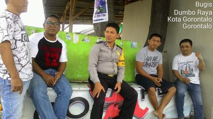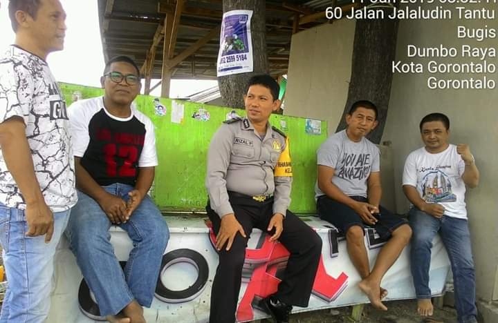 Polres Gorontalo Kota – Bhabinkamtibmas Kel Bugis Kec Dumbo Raya Kota Gorontalo Brigadir Rizal Podungge, melaksanakan sambang ke Masyarakat yang lagi Mangkal dipinggir Jalan ,menyapa masyarakat ,sekaligus memberikan Pesan pesan Kamtibmas,Kamis ( 13/07/2019).