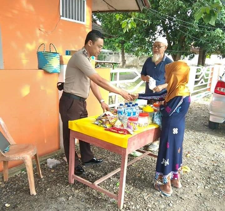 Bhabinkamtibmas kel Molosifat U Polsek Kota Utara Polres Gorontalo Kota BRIGADIR YOFIT MOHA melaksanakan smabnag pada pedagang di pasar rabu sekaligus berbincang bincang dan mendengarkan keluhan pedagang,kamis (17/10/2019)