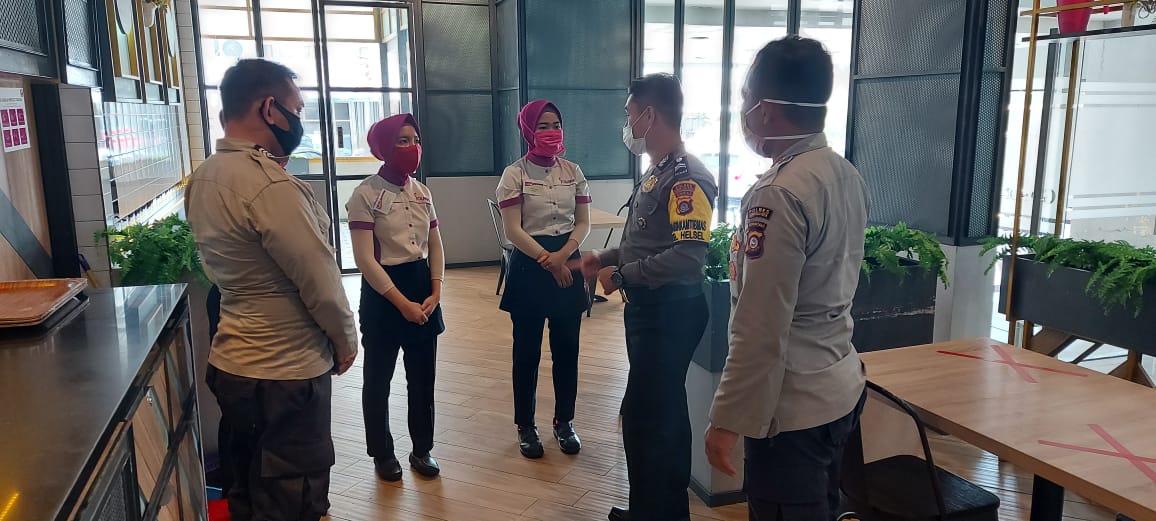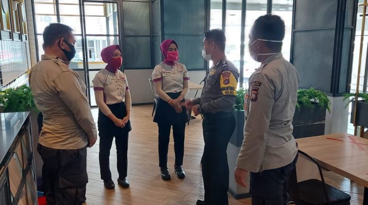 Polres Gorontalo Kota – Bhabinkatibmas Kel.Heledulaa Selatan Polsek Kota Timur Polres Gorontalo Kota Briptu Rizki Djau mensosilaisasikan kebijakan pemerintah pusat terkait New Normal di Mall Gorontalo,jumat ( 05/06/20)