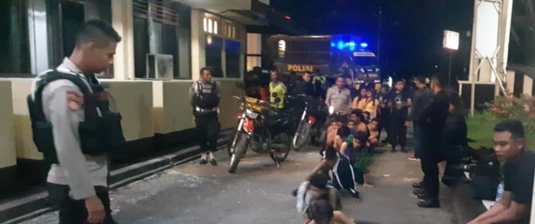 “Kami sedang melakukan patroli dan razia rutin, dan kami mendapati sekelompok anak muda di dua tempat yakni di depan optik swadaya dan lorong di depan kantor walikota.Dari dua tempat tersebut kami mengamankan 19 orang dan dua diantaranya adalah perempuan ,Ucapnya