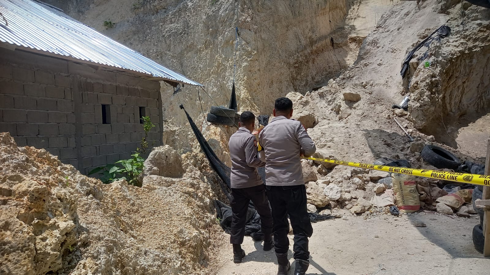Mendapat laporan tersebut, pihak kepolisian polsek kota barat segera mengambil langkah-langkah strategis di lapangan dengan melakukan Pemasangan Police Line (garis polisi) di area longsor untuk mencegah warga mendekati lokasi yang masih berpotensi labil.