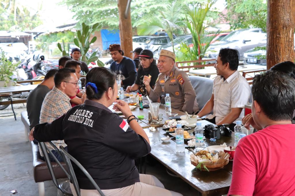 Polresta Gorontalo Kota,Kapolresta Gorontalo Kota Kombespol Dr.Ade Permana,S.I.K.,M.H bersama Seksi Humas Polresta Gorontalo Kota melaksanakan tatap muka bersama awak media / mitra humas yang bertujuan untuk mempererat silaturahmi dan sinergitas Polri dengan pers,di warkop Atap Toea,Rabu (11/01)