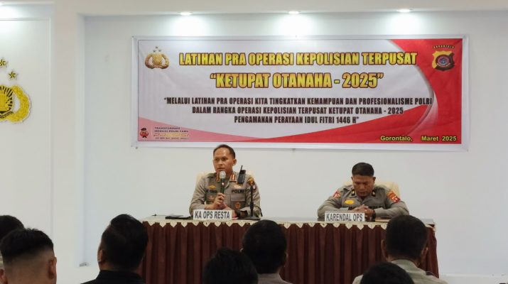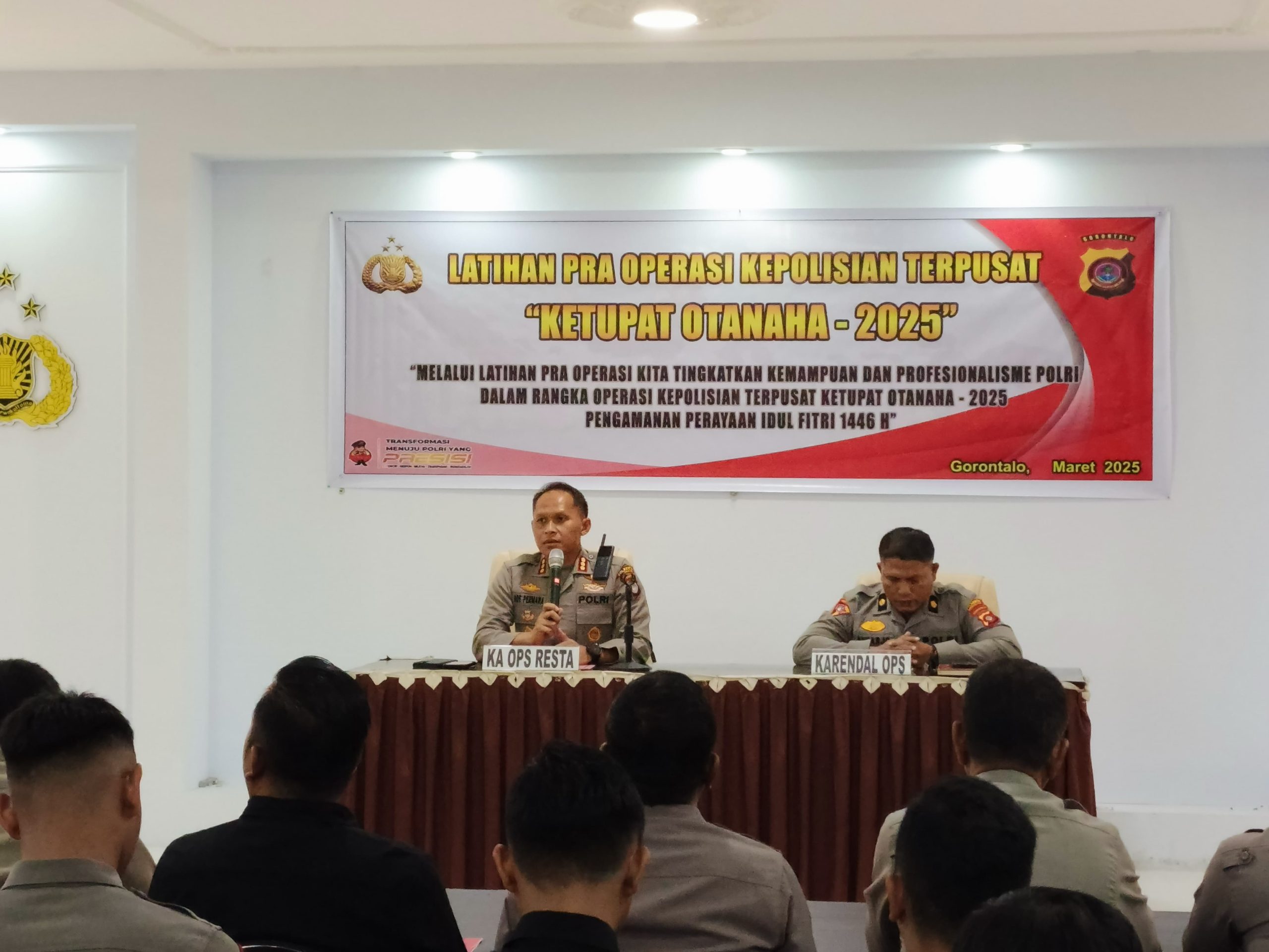 PolrestaGorontaloKota,Kepolisian Resor Kota Gorontalo Kota Polda Gorontalo melaksanakan giat Latihan Pra Operasi (Latpra Ops) Ketupat Otanaha 2025 bertempat di Aula Sanika Satyawada, Selasa (25/3)