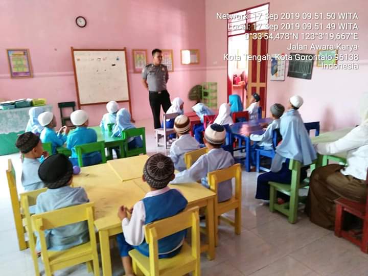 Polres Gorontalo Kota – Polisi Sahabat Anak merupakan salah satu program dari Kepolisian Negara Republik Indonesia yang menyasar anak-anak pada usia dini dengan tujuan untuk menanamkan kedisiplinan dan memberikan pembelajaran tentang tata tertib berlalu lintas kepada anak-anak sejak dini. Demikian dikatakan Bhabinkamtibmas Kel.Liluwo, Kecamatan Kota Tengah, Kota Gorontalo, Brigadir Rijal saat berada di TK TK.Perwati Yang Berada Di Jl.Awara Karya Kel.Liluwo Kec Kota Tengah , kamis (19/09/2019).