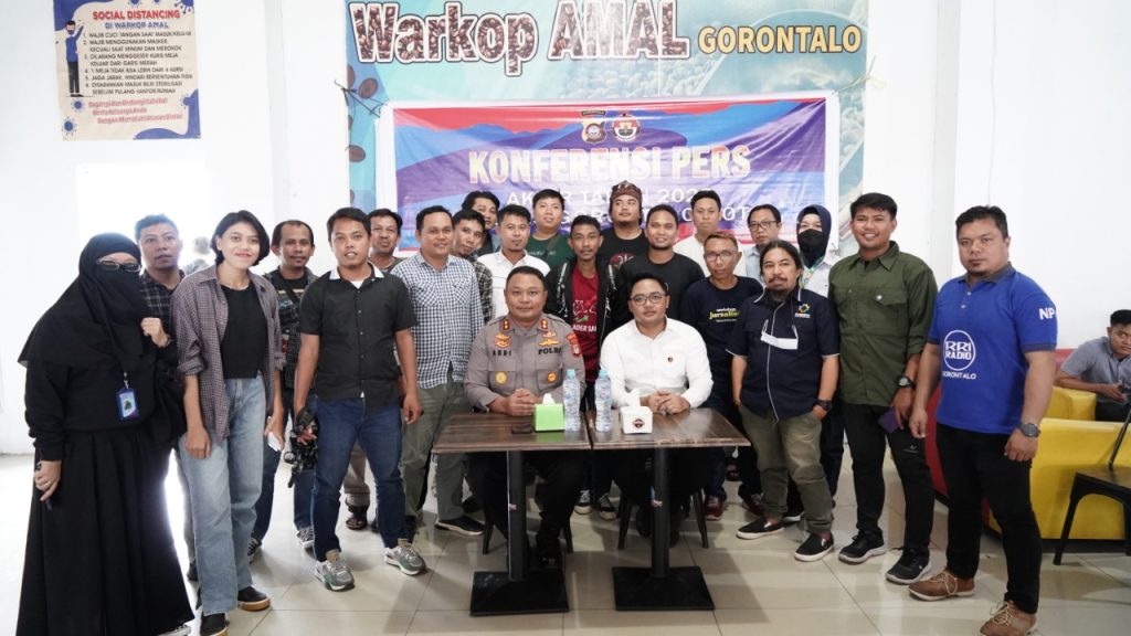 Polres Gorontalo Kota,Dipenghujung tahun 2022 Polres Gorontalo Kota menggelar Konferensi Pers sepanjang tahun 2022 yang di laksanakan di warkop Amal Kota Gorontalo,Selasa (27/12)