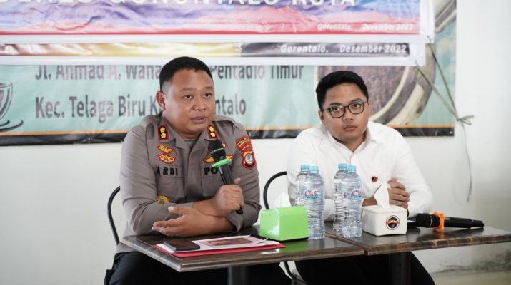 Kapolres Gorontalo Kota Akbp Ardi Rahananto,SE,SIK,M.Si yang di dampingi oleh kasat reskrim Iptu Mohammad Nauval Seno,STK,SIK menjelaskan tentang pelaksanaan tugas Kepolisian kususnya Polres Gorontalo Kota dimulai dari bulan januari 2022 hingga Desember 2022