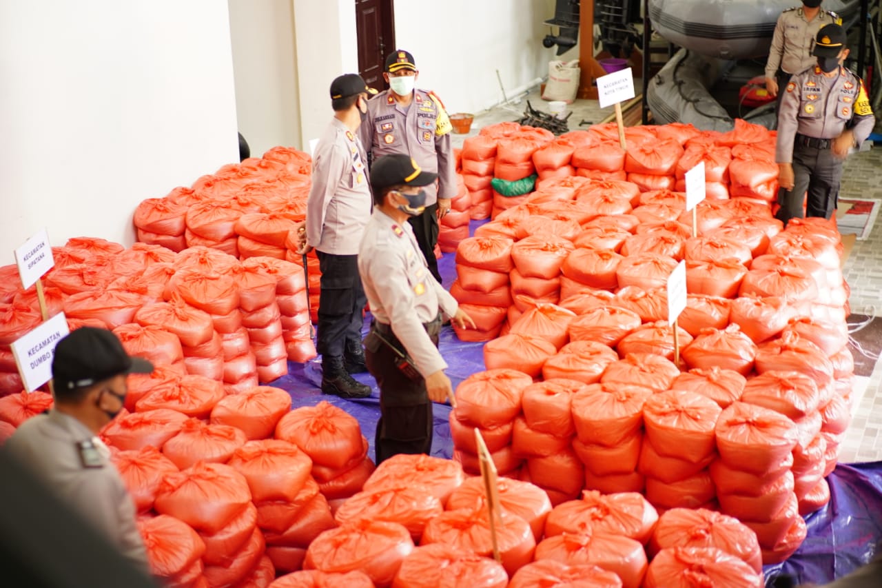 POLRES GORONTALO KOTA SALURKAN 10 TON BERAS DARI KAPOLRI UNTUK WARGA TERDAMPAK COVID 19
