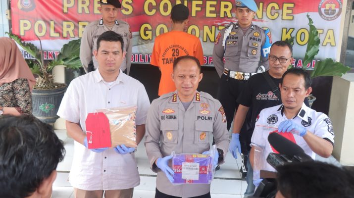 Kapolresta Gorontalo Kota Kombespol Dr. Ade Permana,S.I.K.,MH didampingi Kasat Narkoba Akp Cecep Ibnu Ahmadi,S.H.,S.I.K., dihadapan sejumlah awak media pada konfrensi pers Jumat (3/2/2023) pagi mengatakan, WK (25) warga kelurahan Bugis Kecamatan Dumbo Raya ini ditangkap karena terbukti membawa barang haram narkotika jenis ganja.