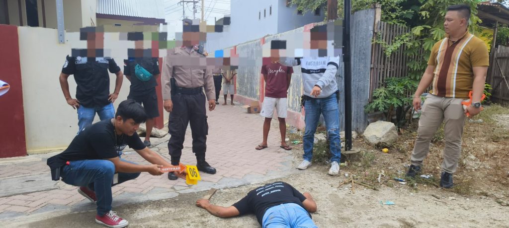 PolrestaGorontaloKota,Polresta Gorontalo Kota yang dipimpin langsung oleh Kasat reskrim Kompol Leonardo Widharta, SIK lakukan oleh TKP pembacokan pada personil yang sedang bertugas yang berujung meninggalnya pelaku pembacokan MH pada sabtu (10/09) dini hari.
