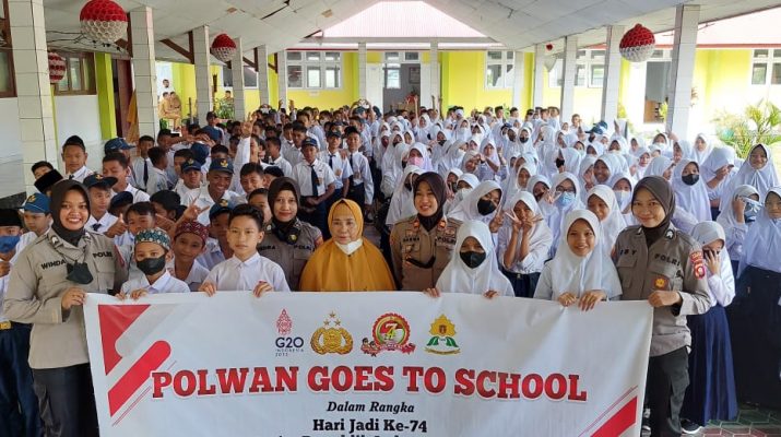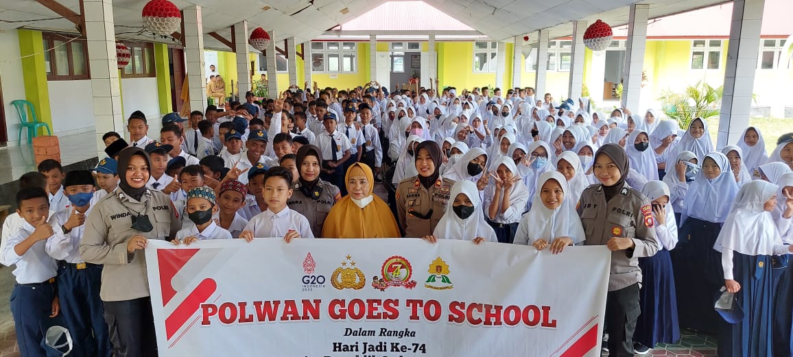 Polres Gorontalo Kota,Dalam rangka menyongsong Hari Jadi Polwan (Polisi Wanita) Ke-74 yang diperingati setiap tanggal 1 September, Srikandi Polres Gorontalo Kota, melakukan giat Polwan Goes To School,Senin (08/08)