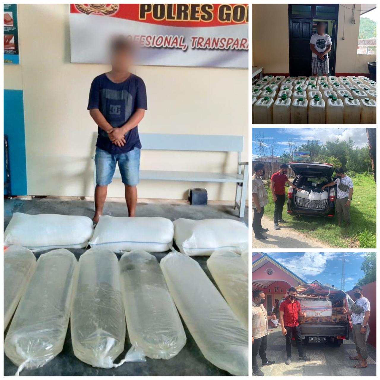 Polres Gorontalo Kota,Satuan Narkoba Polres Gorontalo Kota berhasil mengamankan 1,8 Ton miras jenis cap tikus dan 3 Orang pelaku ditempat penampungan cap tikus di kelurahan Ipilo Kecamatan Kota Timur Kota Gorontalo Jumat (16/10/2020).