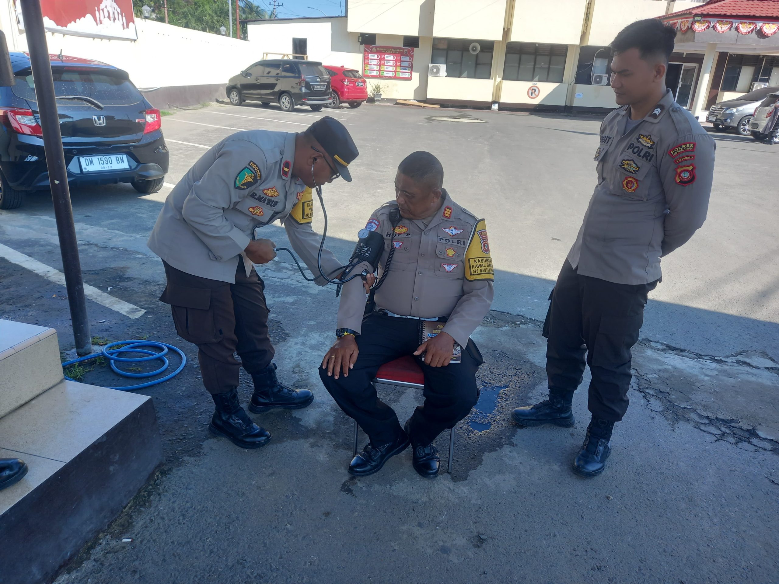 Kapolresta Gorontalo Kota Kombespol Dr. Ade Permana,S.I.K.,MH melalui kasie dokes Ipda Ridwan Ma’ruf mengatakan bahwa Dokkes memeriksa kondisi kesehatan seperti tekanan darah, denyut jantung, dan pemeriksaan fisik umum.