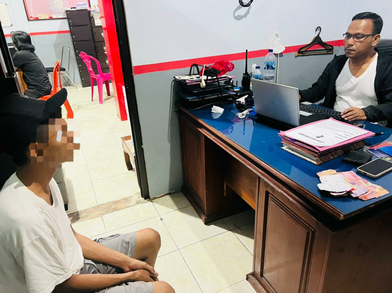 Terduga Pelaku HK bersama barang bukti telah diamankan di ruang Sat Reskrim Polres Gorontalo Kota untuk menjalani proses penyelidikan dan penyidikan lanjutan.