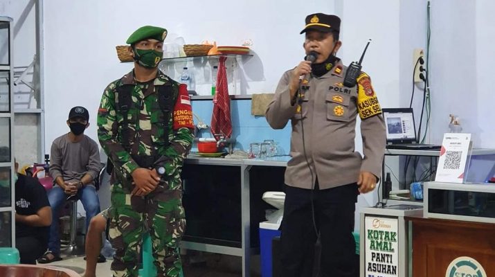 Polres Gorontalo Kota,Kepolisian Polsek Selatan Polres Gorontalo Kota yang dipimpin Kapolsek Iptu Heru Widada bersama unsur TNI, memberikan sosialisasi untuk lebih memperketat protokol kesehatan Covid 19 di Warkop Amal Senin ( 23/11/2020) Sore.