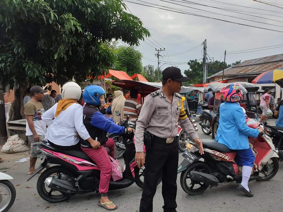 Polres Gorontalo Kota – Bhabinkamtibmas kelurahan pilolodaa polsek kota barat kota Gorontalo Brigadir Rahim Laramimu melakukan pengaturan arus lalulintas (02/07/19).